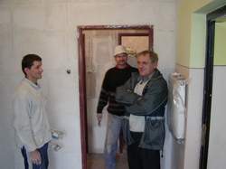 Trwają nadal prace w Domu Kultury w Półwsiu . Remont sanitariatów to ważna sprawa - szczególnie , że w lokalu tym ma siedzibę Obwodowa Komisja Wyborcza . Prace nadzoruje czujne oko Sołtysa wsi - Pan Stanisław Maślona . ...